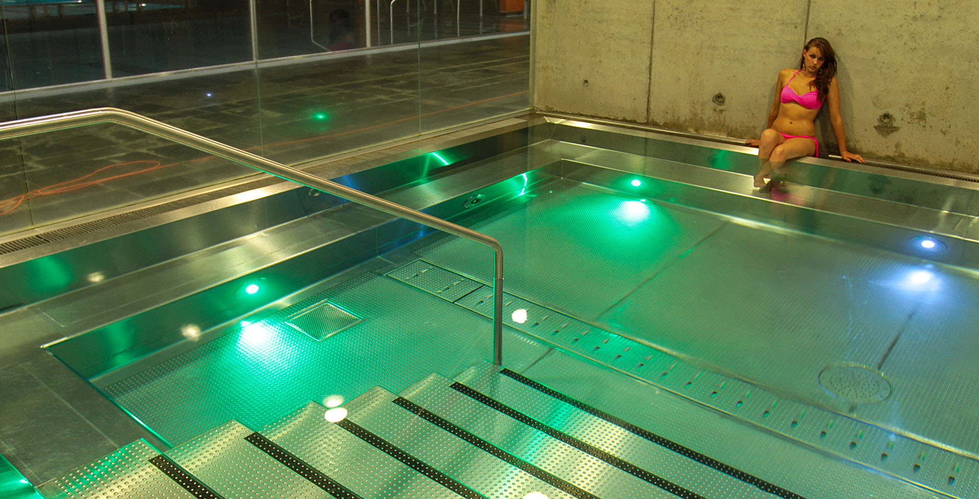 Součástí relaxační zóny je vířivka s barevným osvětlením a regeneračními vzduchovými lavicemi. Ve vířivce najednou může relaxovat až 15 osob.